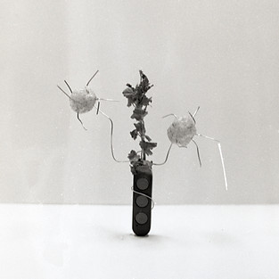 My photography series explores the coexistence of technology and nature by combining discarded electronics, expired food, and plant matter into pseudo-botanical specimens. Deliberately captured in black and white film to evoke scientific documentation, these images present strange new life forms as visual metaphors for our wasteful habits and nature's persistence.